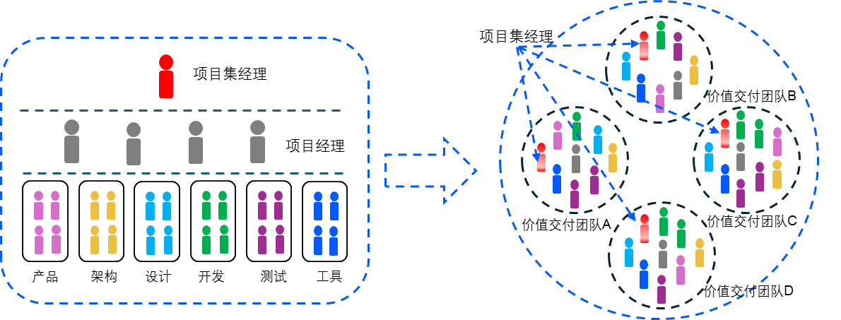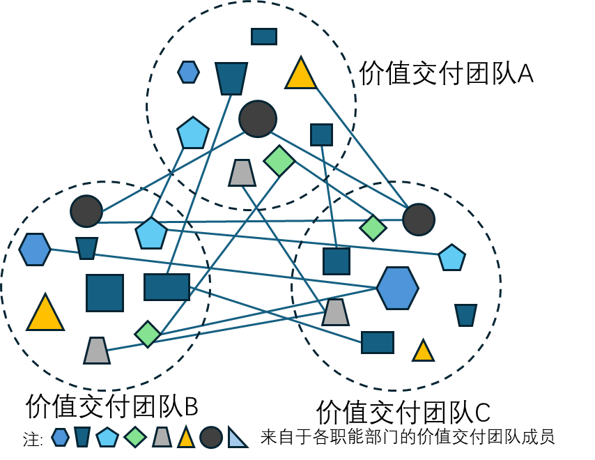 构建灵活的组织结构:“能够生存下来的物种,并不是最强壮的,也不是最聪明的,而是那些最能适应变化的物种。”,项目管理团队从职能架构、项目管理、流程优化三个维度入手,以项目交付或产品功能特性为核心导向,突破传统科层制组织的边界壁垒,通过动态组建跨职能融合团队,形成了一个个自主运行的价值创造和交付的新型团队模式,有效地提升了组织自适应力。